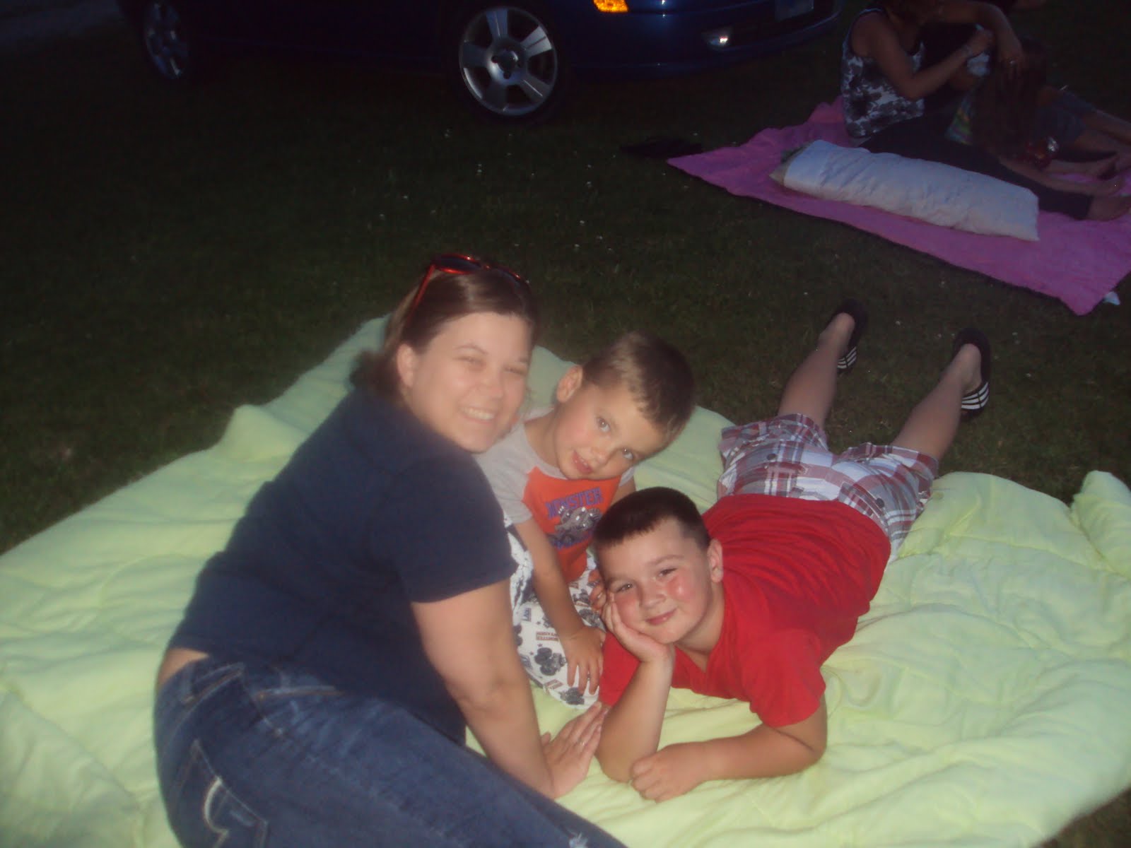 We had such a great weekend. Friday night we went to take Kobe to my aunts and got to talking and missed our movie. Oh well, we had a great time. Roger was a gentleman and mowed my aunts yard while we fixed something to eat. Then, we sat off fireworks. Of course my camera was still dead. But I did get a pic with my phone :)